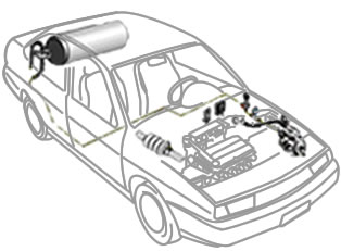 O GNV sai do reservatório através da válvula do cilindro e se dirige ao compartimento do motor através de uma tubulação de alta pressão ligada à válvula de abastecimento.